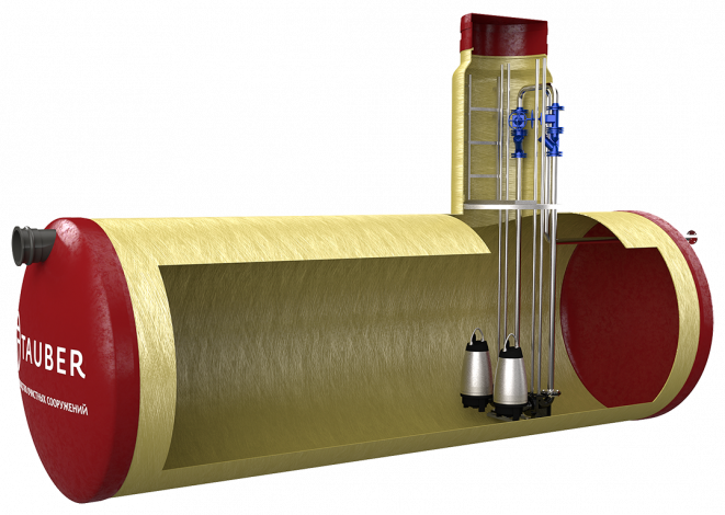 Усреднитель сточных вод — это подземный резервуар, чаще всего в форме цилиндра. В основном его изготавливают или из стекловолокна, или делают металлическим с защитным покрытием.
